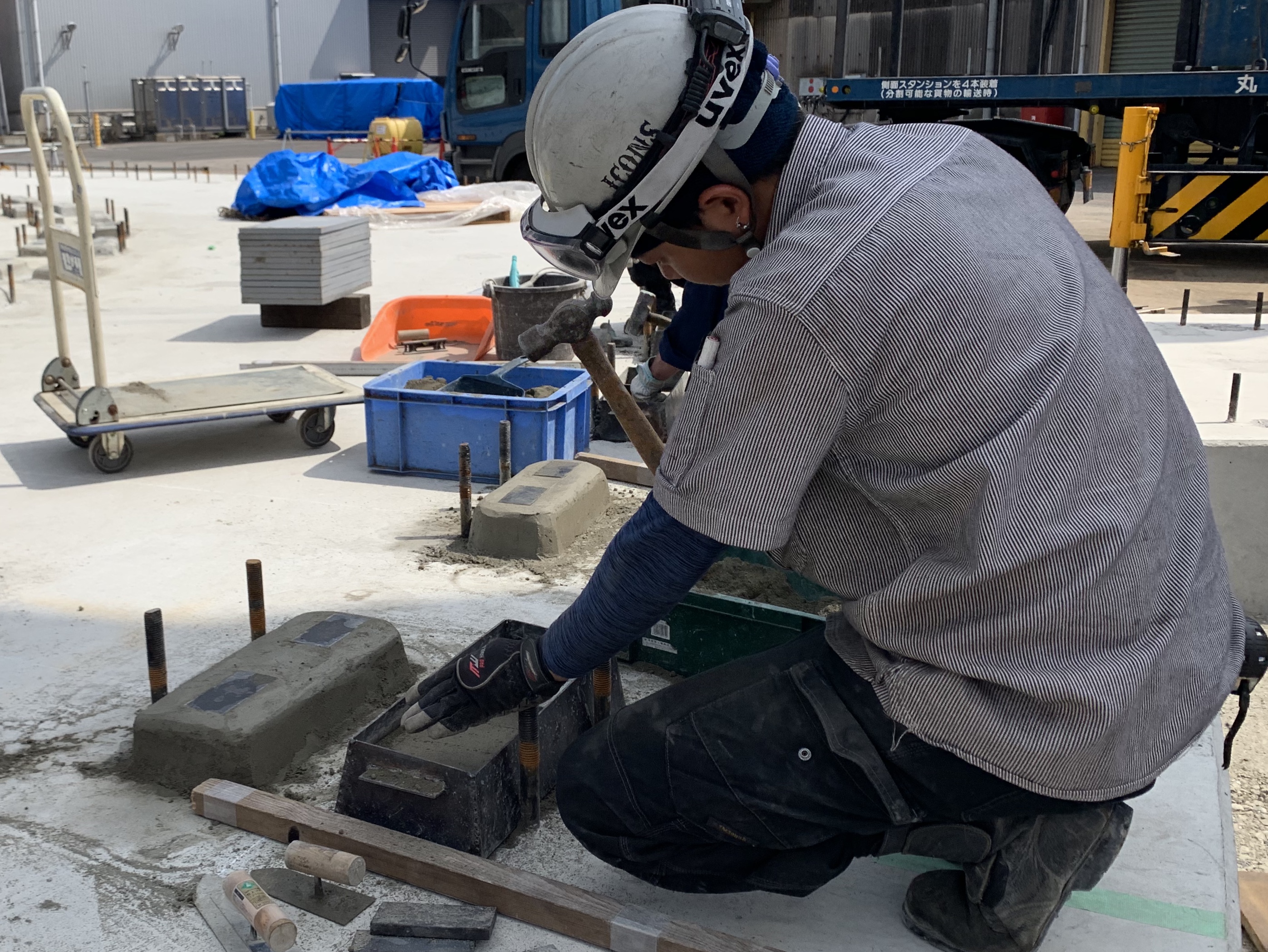 8:00までに倉庫兼事務所または出張宿泊先から現場に入ります。